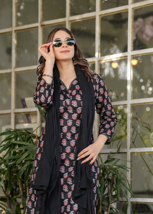 Product Code - MF 613Colors - BlackOccasion - Party, Wedding, Festive, Events Etc. SET CONTAINSKurti...