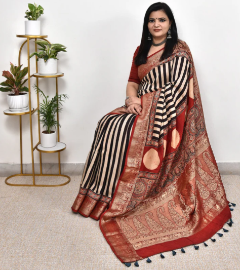 AJRAKH DOLA SILK SAREE WITH NAKSHI ZARI PALLU