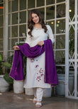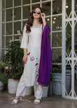 Beautiful Off White Viscose Rayon Fabric Kurtis Pant Set