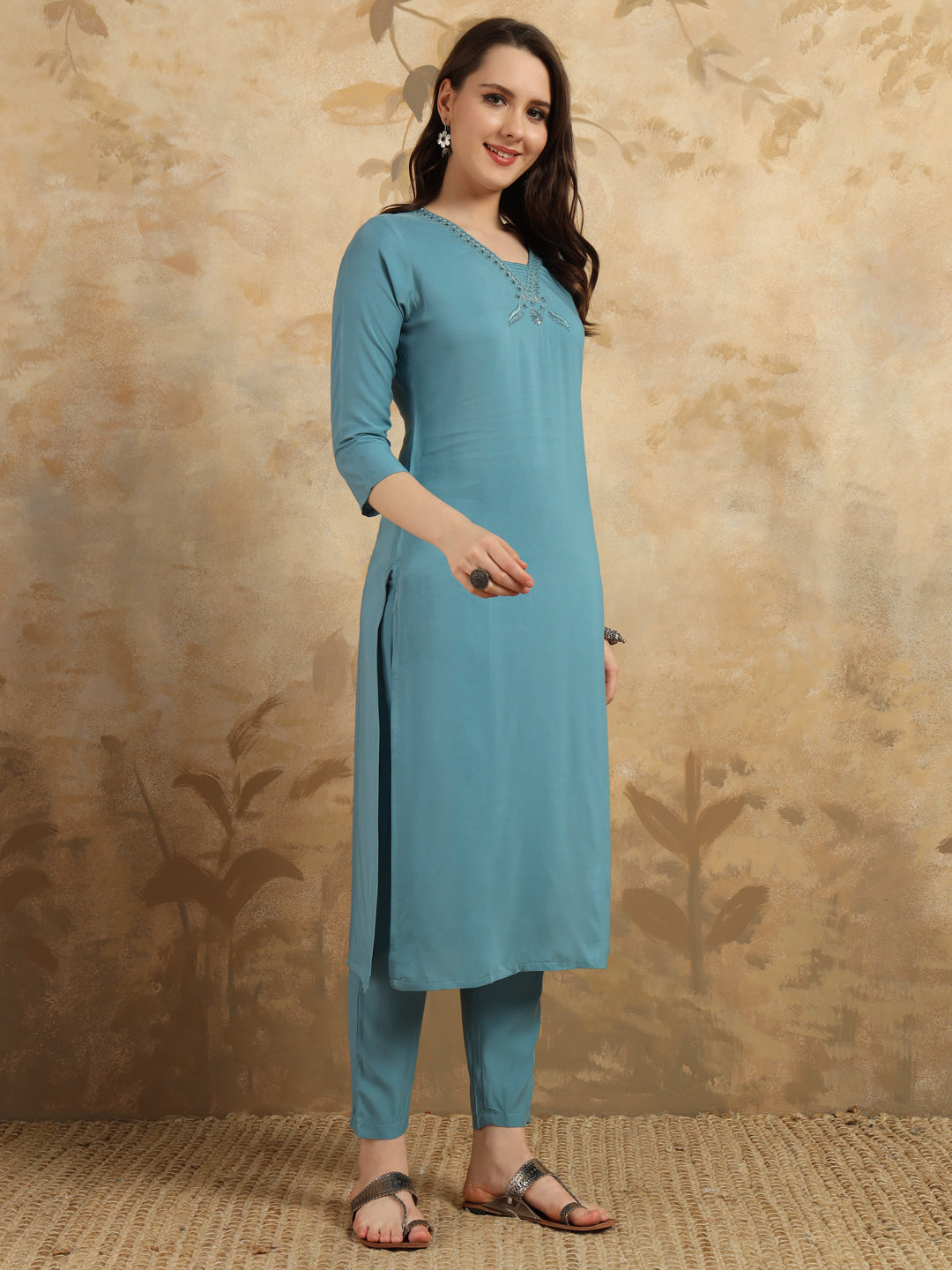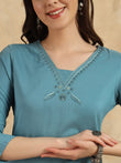 Beautiful Sky Blue Color Viscose Chanderi Kurtis Pant Set