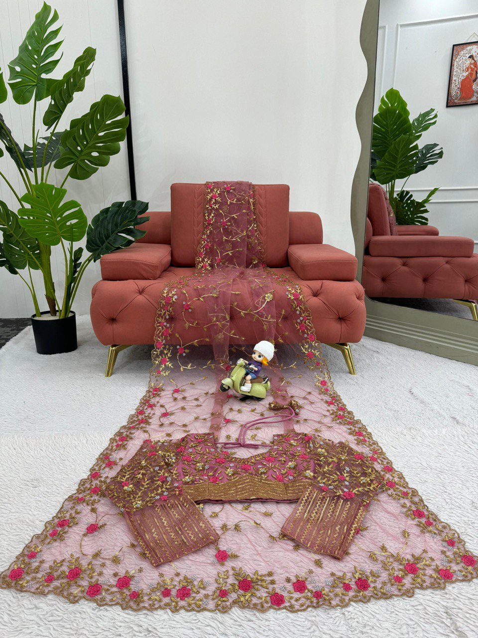 Beautiful Designer Saree on Soft Net Fabric with Thread & Sequence Work