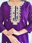 Beautiful Wine Color Viscose Chanderi Kurtis Pant Set