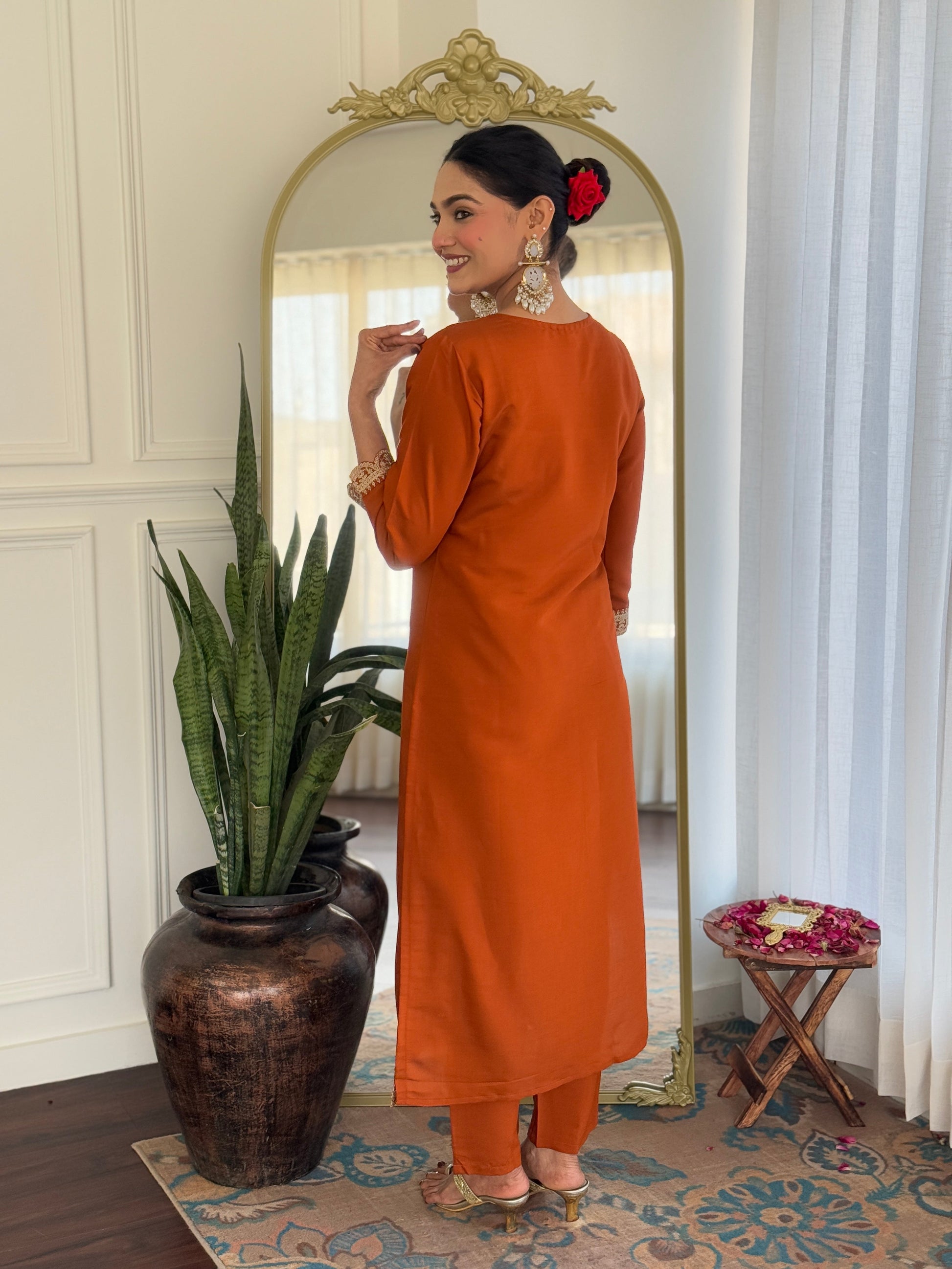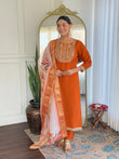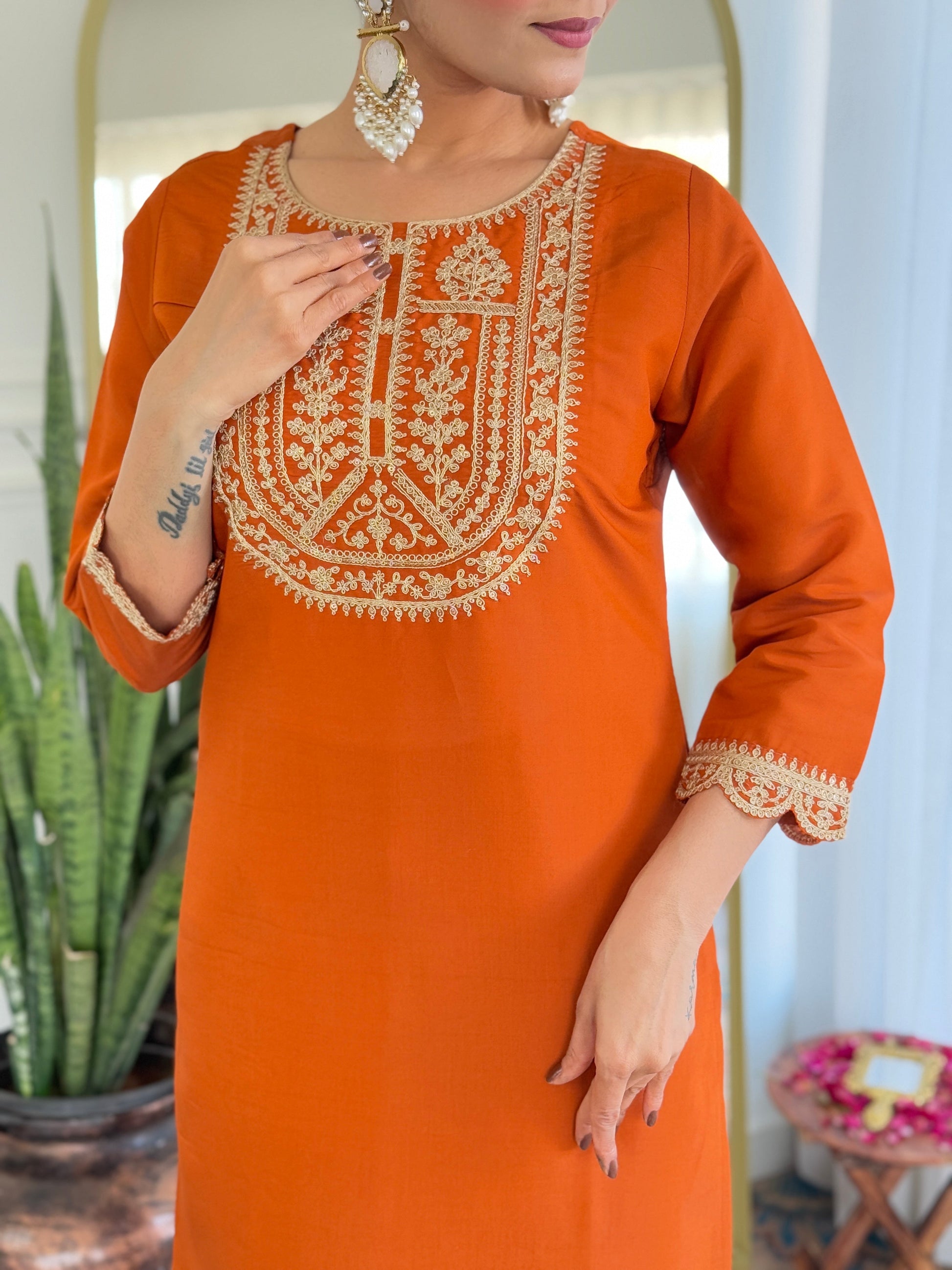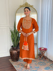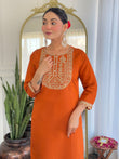 Beautiful Orange Color Viscose Rayon Fabric Kurtis Pant Set