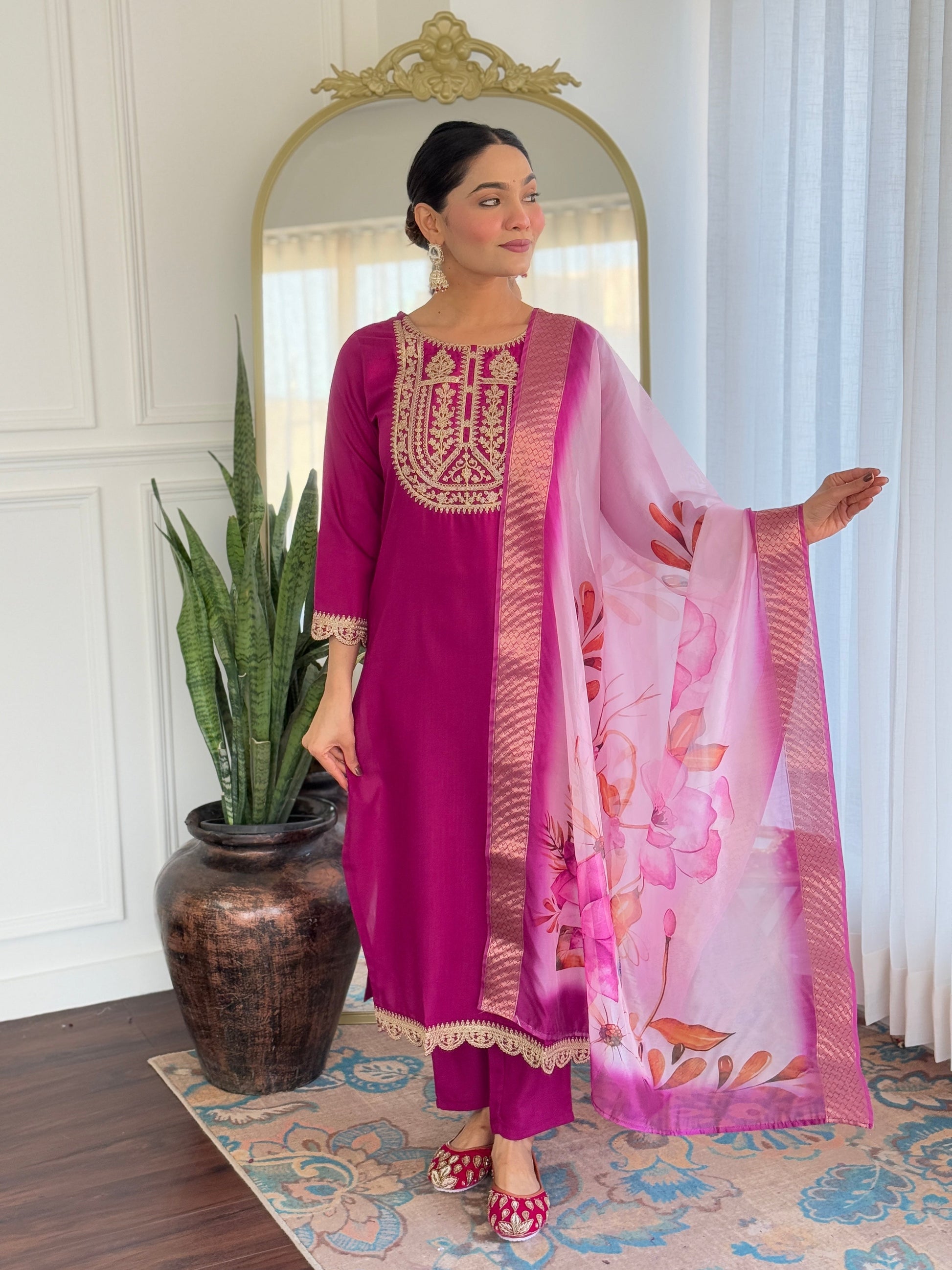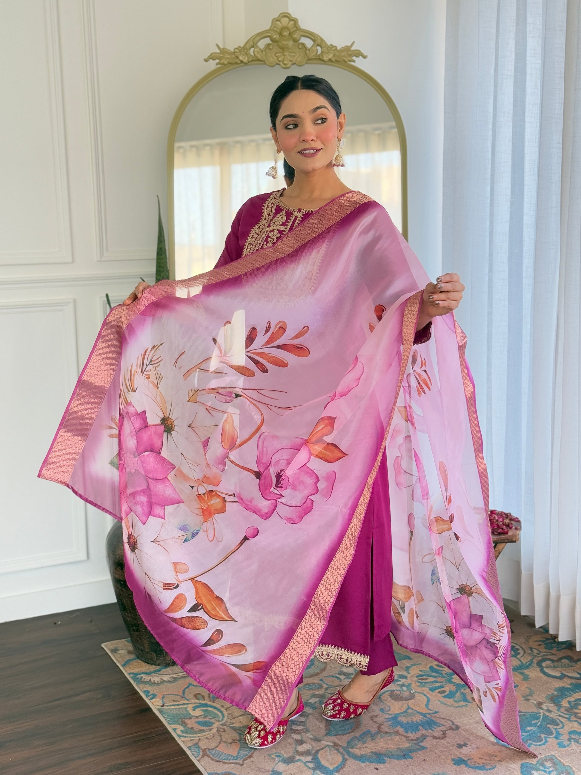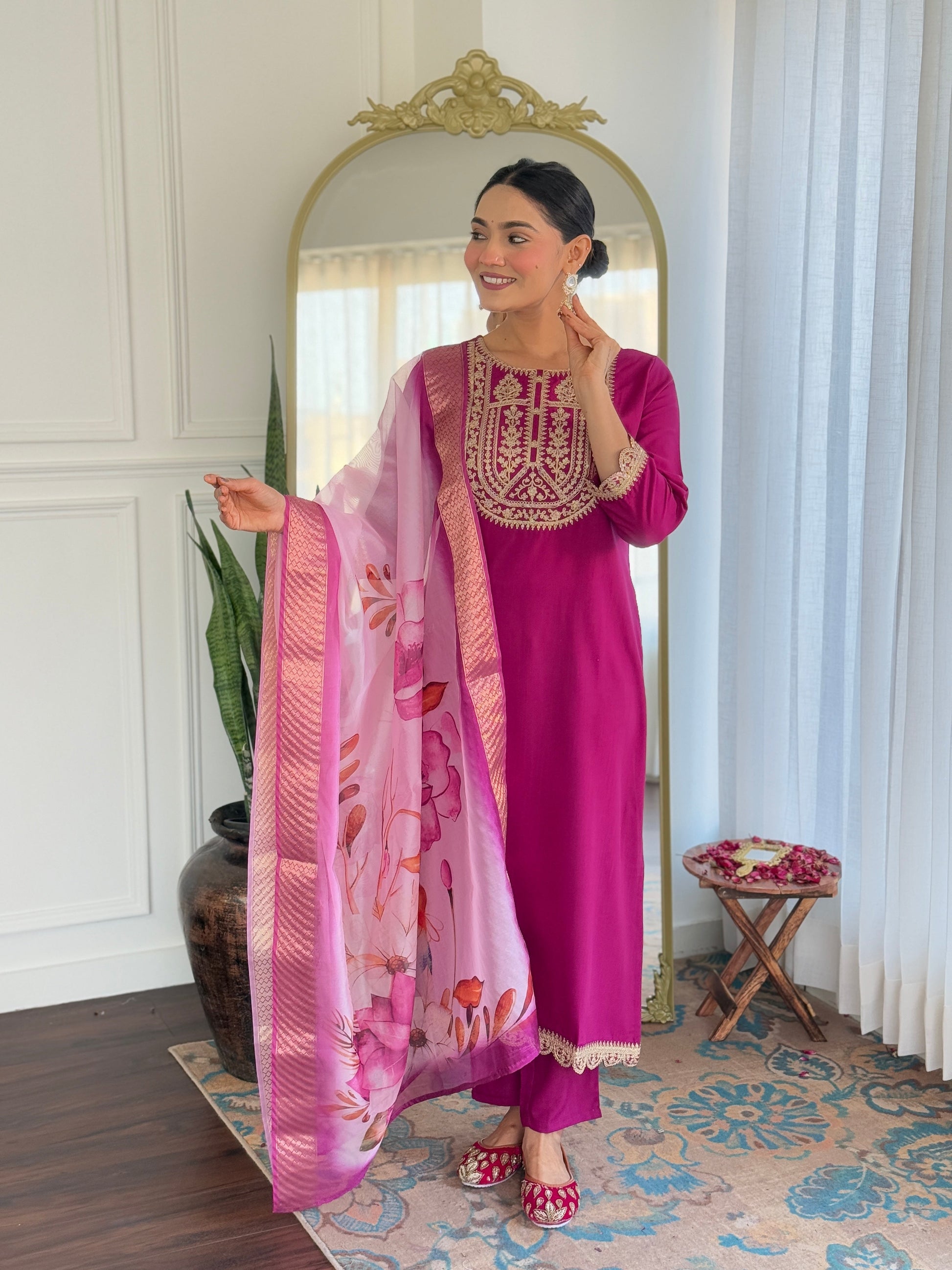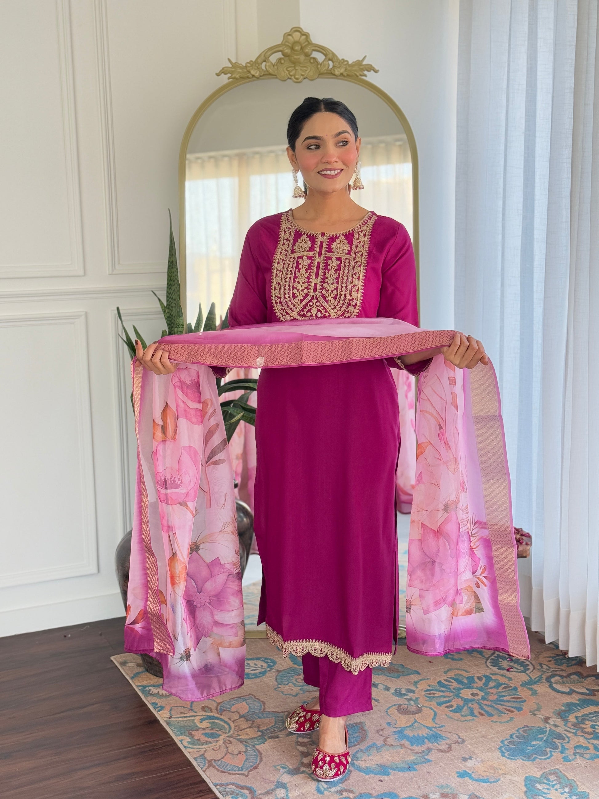 Beautiful Wine Color Viscose Rayon Fabric Kurtis Pant Set