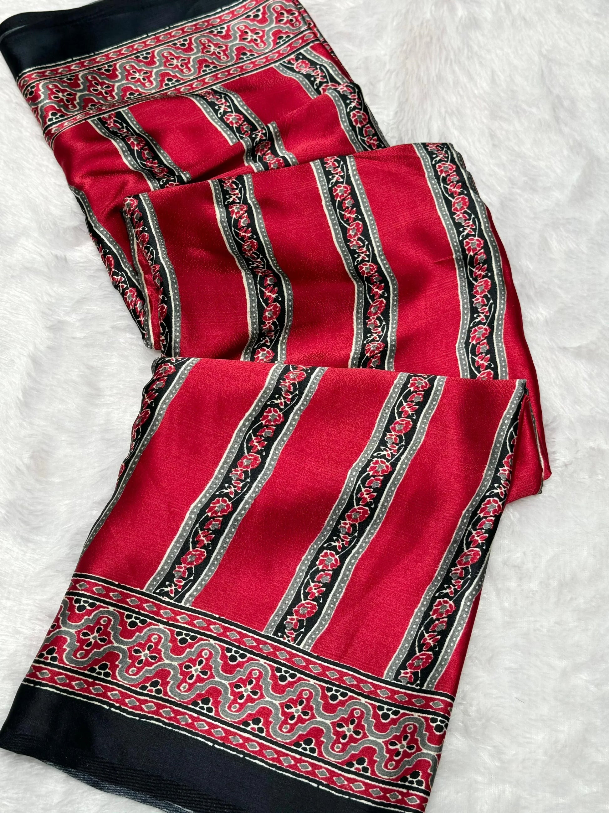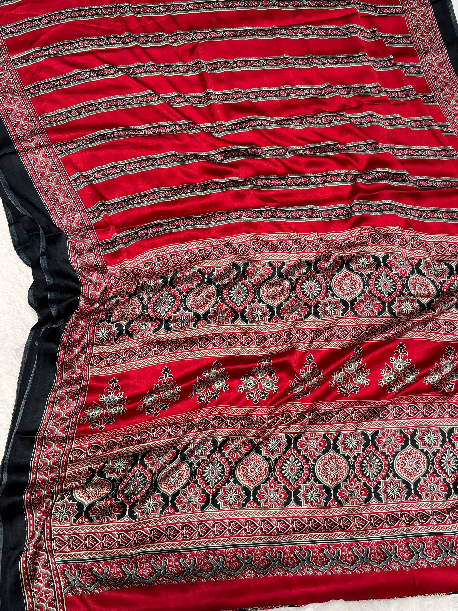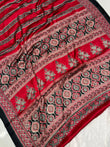 Black And Maroon Ajrakh Printed Soft Modal Silk Natural Print Saree P4